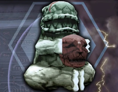 It's not dead yet, though. It straight up just bashes Mithrun with its massive globe of a rock, whacking him into the opposite wall without his weapon - it's still stuck in its stony body. )