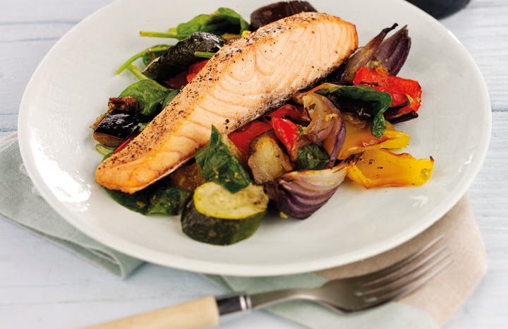 Ganymede makes his approach. He has put together a plate of Salmon with balanced Mediterranean spices, alongside a good assortment of vegetables. We're keeping terms simple and clean here, but the main dish looks like this. ]
